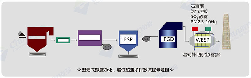 濕式靜電除塵(霧)器WESP是高效的燃煤電廠、鋼鐵廠、小型鍋爐、垃圾焚燒、水泥建材、化工等煙氣深度凈化裝置,能很有效的治理PM2.5顆粒物(PM0.5、PM10)、SO3酸霧、石膏雨、氨氣溶膠、重金屬汞、二噁英等,減小煙囪尾羽,解決石膏雨、大白煙問(wèn)題、粉塵等達(dá)標(biāo)并超潔凈超低排放。
