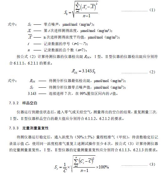 儀器開機(jī)并調(diào)出運(yùn)行方法,使儀器處于最佳運(yùn)行狀態(tài),通入接近檢出限的零氣或除烴空氣加標(biāo)樣品,待讀數(shù)穩(wěn)定后連續(xù)測(cè)量7次,記錄測(cè)得濃度值Xi,其中i為測(cè)量次數(shù)(i=1,2...,n),按公式(1)計(jì)算所取得數(shù)據(jù)的標(biāo)準(zhǔn)偏差S0,以S0記為儀器的零點(diǎn)噪聲。