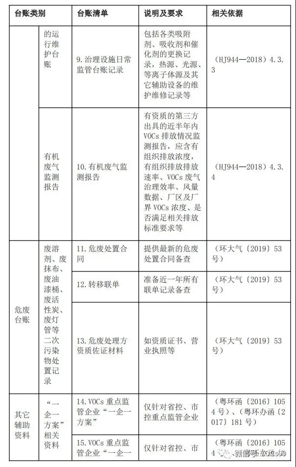 VOCs管控臺(tái)賬清單