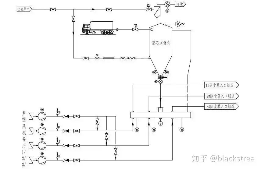 該脫酸方法是利用風(fēng)機(jī)的壓能將消石灰粉末噴射到反應(yīng)塔出口的煙道中,使得消石灰與煙道流過的煙氣中的酸性成分發(fā)生中和反應(yīng),去除酸性氣體。