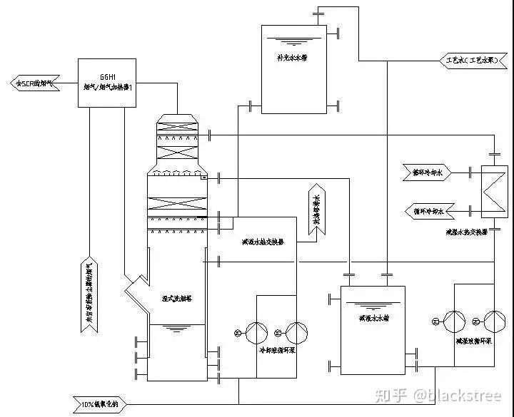 濕法脫酸工藝是利用堿性吸收劑(一般為NaOH溶液)在洗滌塔內(nèi)吸收HC1和SO2等酸性氣體。濕法凈化工藝凈化效率很高,國外多年的應(yīng)用業(yè)績均表明其對(duì)HC1的脫除效率可達(dá)99%以上,對(duì)SO2也可達(dá)到95%以上的脫除效率。