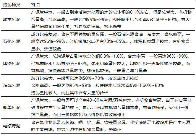 典型工業(yè)污泥的特點(diǎn)對(duì)比: