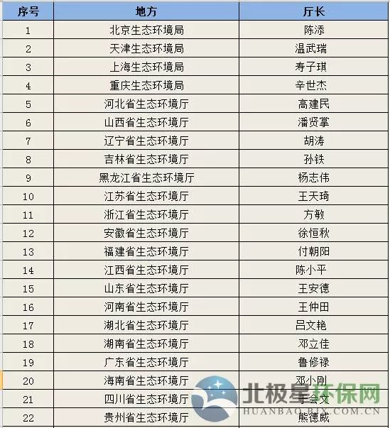 最新各省市自治區(qū)生態(tài)環(huán)境廳(局)長一覽