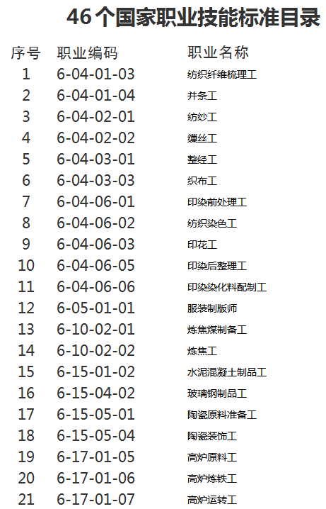 人力資源社會保障部辦公廳關(guān)于頒布紡織纖維梳理工等46個國家職業(yè)技能標(biāo)準(zhǔn)的通知