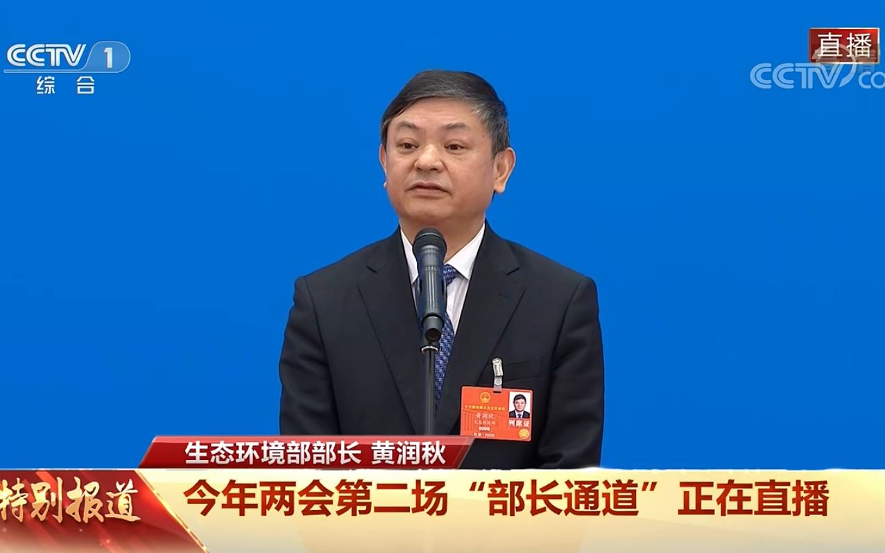 生態(tài)環(huán)境部部長(zhǎng)黃潤(rùn)秋亮相“部長(zhǎng)通道”。