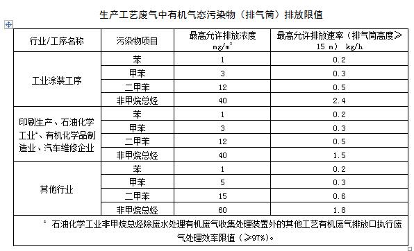 5.2.2 生產(chǎn)工藝廢氣中有機(jī)氣態(tài)污染物排氣筒、無組織排放監(jiān)控濃度限值分別按表2、表3的規(guī)定執(zhí)行。