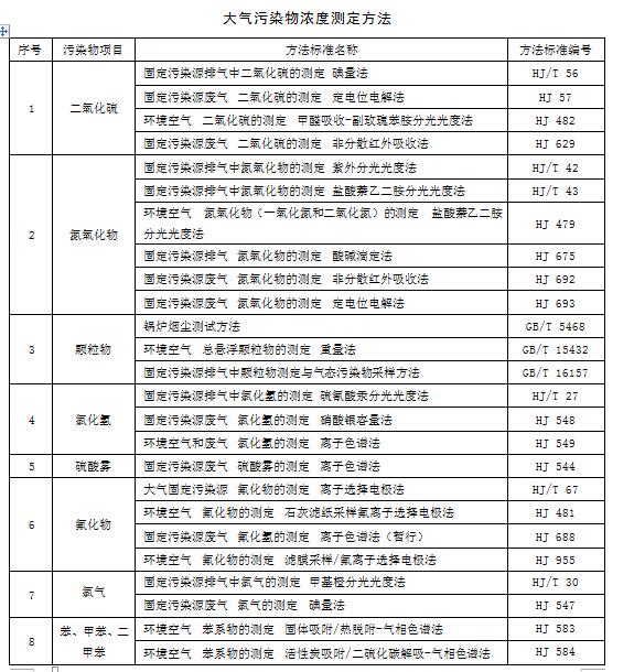 大氣污染物排放濃度測定采用表5所列的方法標(biāo)準(zhǔn)或國家主管部門認(rèn)定的等效方法執(zhí)行。