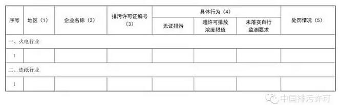 填表說明:(1)具體到企業(yè)所在縣(區(qū));(2)企業(yè)注冊名稱全稱;(3)無證排污企業(yè)填無;(4)勾選對應(yīng)的行為,可多選,無相應(yīng)行為的可不選;(5)簡要說明具體行為和采取的處罰情況。