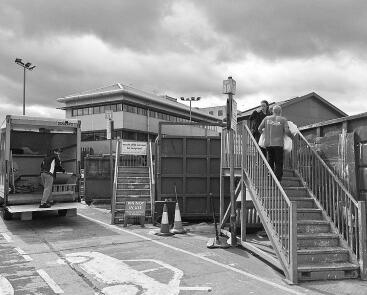 在倫敦卡姆登區(qū)的垃圾回收中心,市民開(kāi)車來(lái)扔垃圾