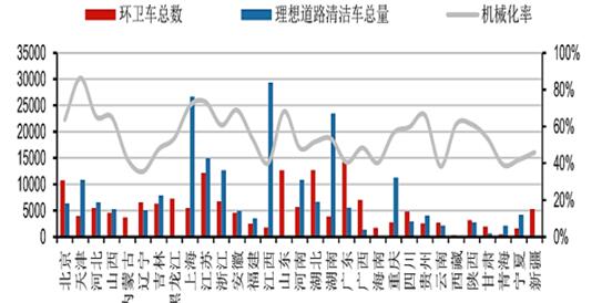 全國各省市環(huán)衛(wèi)機械化情況