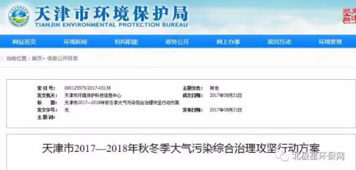 天津市2017—2018年秋冬季大氣污染綜合治理攻堅(jiān)行動(dòng)方案