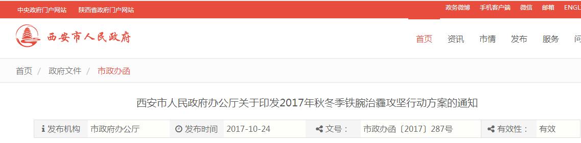 西安市人民政府辦公廳關于印發(fā)2017年秋冬季鐵腕治霾攻堅行動方案的通知