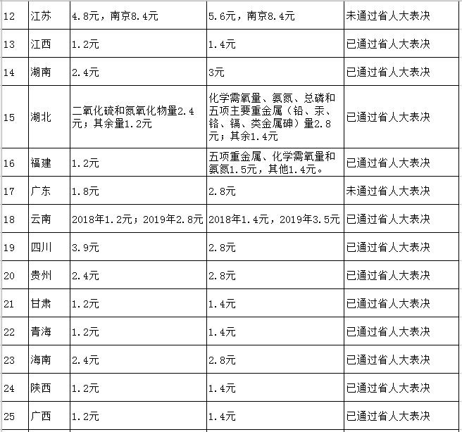 大氣污染物每污染當量2.4元;水污染物每污染當量2.8元。為貴州現(xiàn)行排污費征收標準的兩倍。(已通過省人大表決)