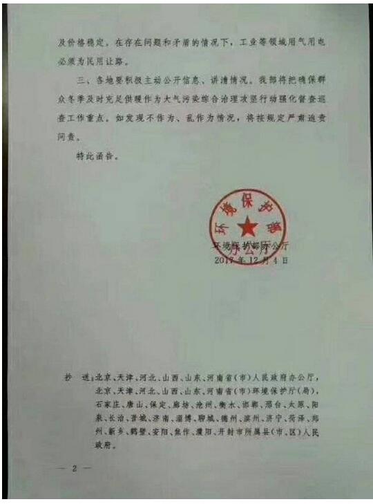 據(jù)《能源》記者了解,為了應(yīng)扭轉(zhuǎn)這一“窘境”,兌現(xiàn)采暖承諾,環(huán)保部于12月4日向京津冀及周邊地區(qū)“2+26”城市正式下發(fā)《關(guān)于請(qǐng)做好散煤綜合治理確保群眾溫暖過冬工作的函》特急文件,以解決部分地區(qū)以電代煤、以氣代煤工程尚未按計(jì)劃完工,個(gè)別地區(qū)供暖季氣源緊張等問題。