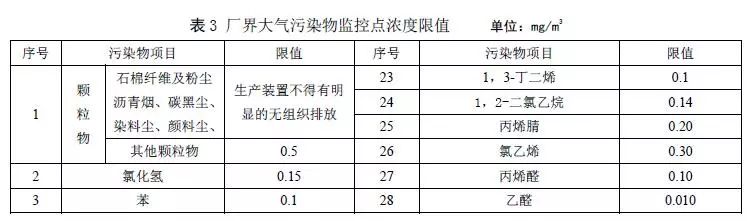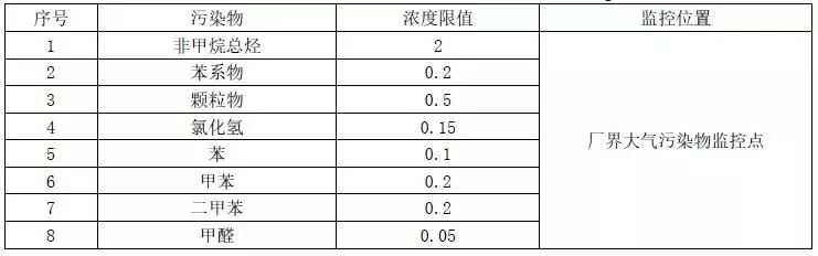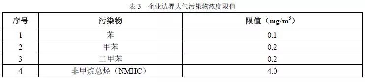 廠界大氣污染物監(jiān)控點(diǎn)濃度限值執(zhí)行表3的規(guī)定。