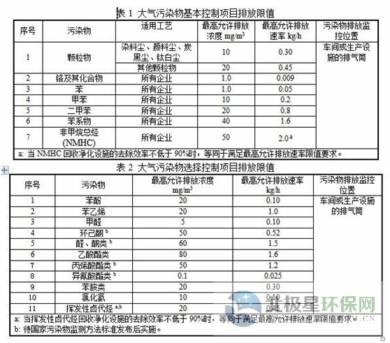 有組織排放源大氣污染物排放限值執(zhí)行表1和表2中規(guī)定的大氣污染物排放限值。