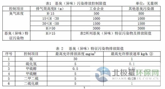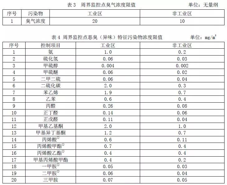 現(xiàn)有源自2018年7月1日起,新源自2017年2月1日實(shí)施之日起,周界監(jiān)控點(diǎn)的臭氣濃度限值和惡臭特征污染物的濃度限值應(yīng)分別符合表3規(guī)定和表4的規(guī)定。