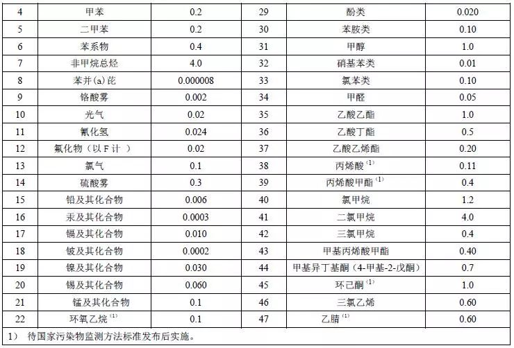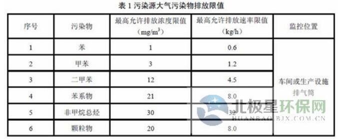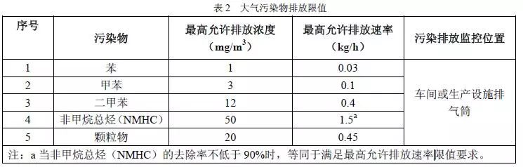 大氣污染物排放限值執(zhí)行表2規(guī)定。