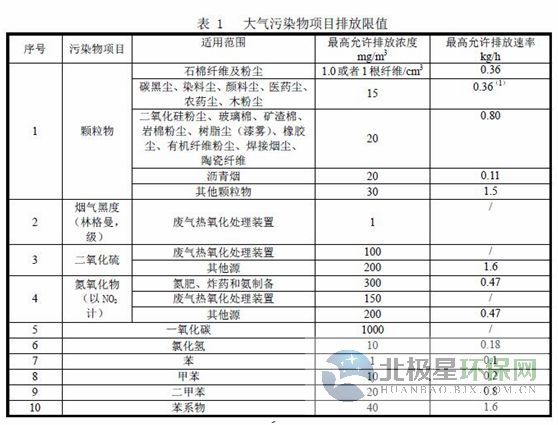 污染源大氣污染物排放濃度和排放速率限值應(yīng)符合表1規(guī)定。