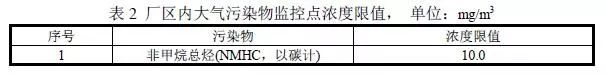 廠區(qū)內(nèi)大氣污染物監(jiān)控點(diǎn)濃度限值執(zhí)行表2的規(guī)定。