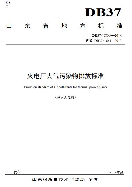 山東省火電廠大氣污染物排放標(biāo)準(zhǔn)(征求意見(jiàn)稿)