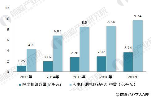 圖表5:2013-2017年我國火電脫硝及除塵裝機(jī)容量(單位:億千瓦)