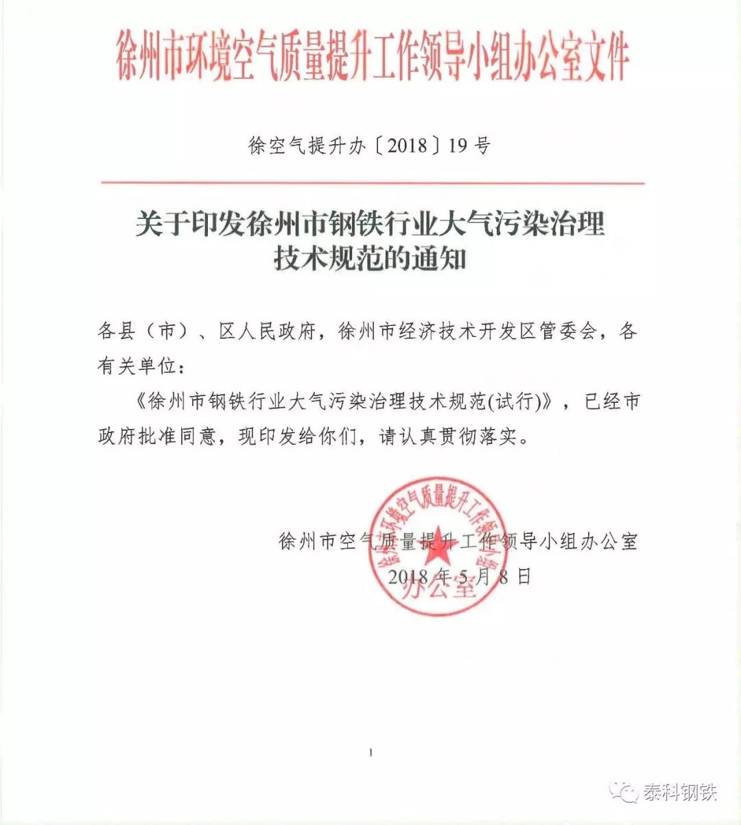 近日,江蘇徐州市環(huán)境空氣質量提升工作領導小組辦公室發(fā)布《徐州市鋼鐵行業(yè)大氣污染治理技術規(guī)范(試行)》。