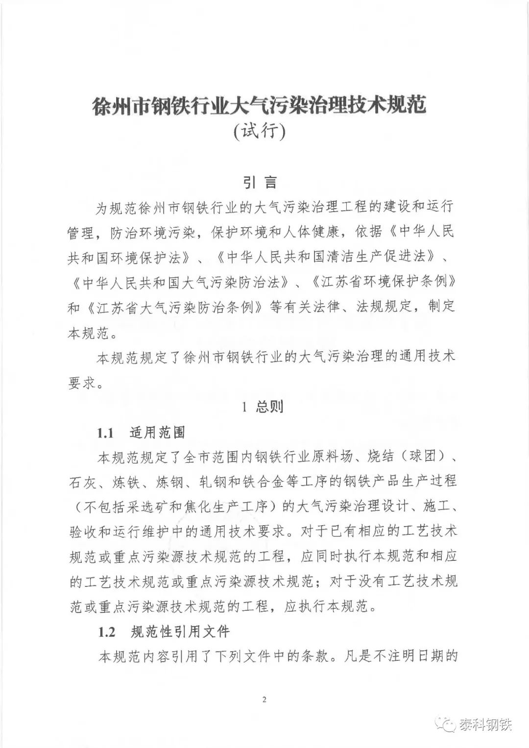 徐州市鋼鐵行業(yè)大氣污染治理技術規(guī)范出臺