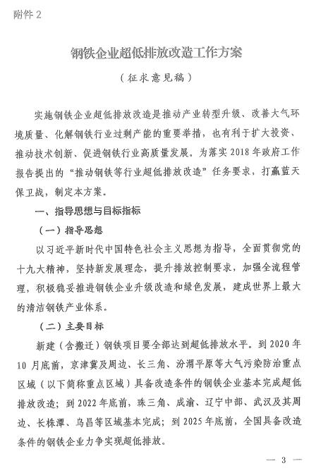 生態(tài)環(huán)境部辦公廳最新發(fā)布關(guān)于征求《鋼鐵企業(yè)超低排放改造工作方案(征求意見稿)》意見的函,詳情如下: