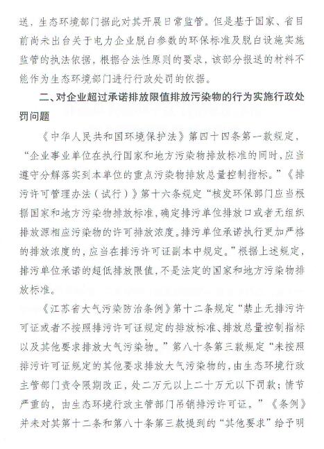 江蘇發(fā)布關(guān)于明確火電企業(yè)環(huán)境執(zhí)法監(jiān)管依據(jù)的復(fù)函。主要涉及兩個(gè)問(wèn)題:對(duì)煙氣脫白工程在法律層面上缺乏監(jiān)管依據(jù)的問(wèn)題和對(duì)企業(yè)超過(guò)承諾排放限值排放污染物的行為實(shí)施行政處罰的問(wèn)題。
