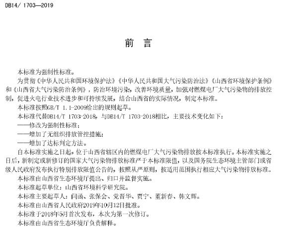 全文|山西:燃煤電廠大氣污染物排放標(biāo)準(zhǔn)(DB14/1703-2019)