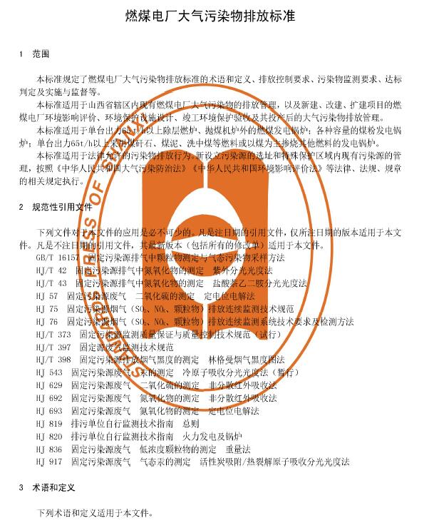 山西發(fā)布《燃煤電廠大氣污染物排放標(biāo)準(zhǔn)》。全文如下: