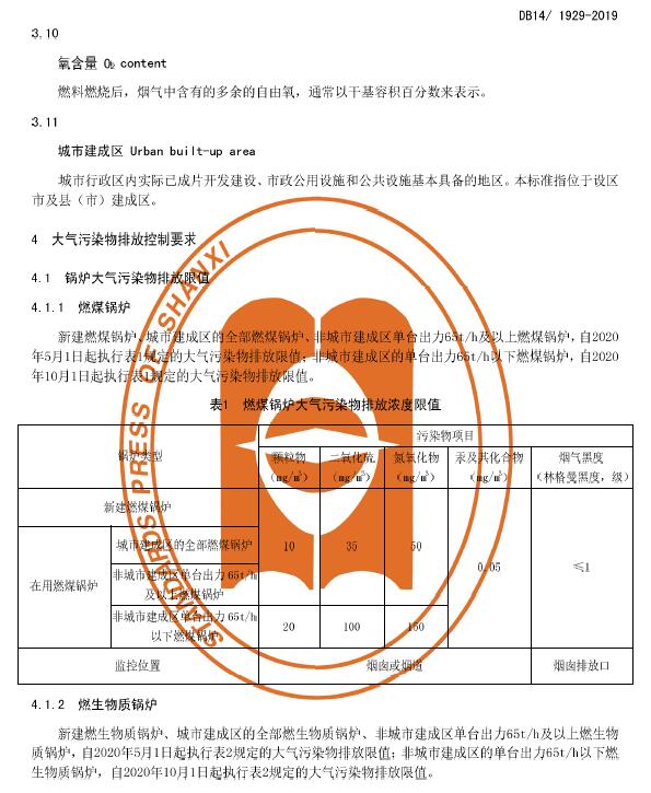 山西:《鍋爐大氣污染物排放標(biāo)準(zhǔn)》(DB14/1929-2019)