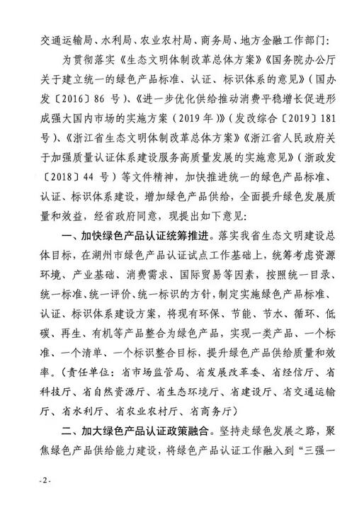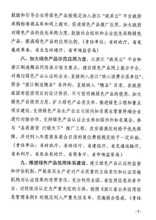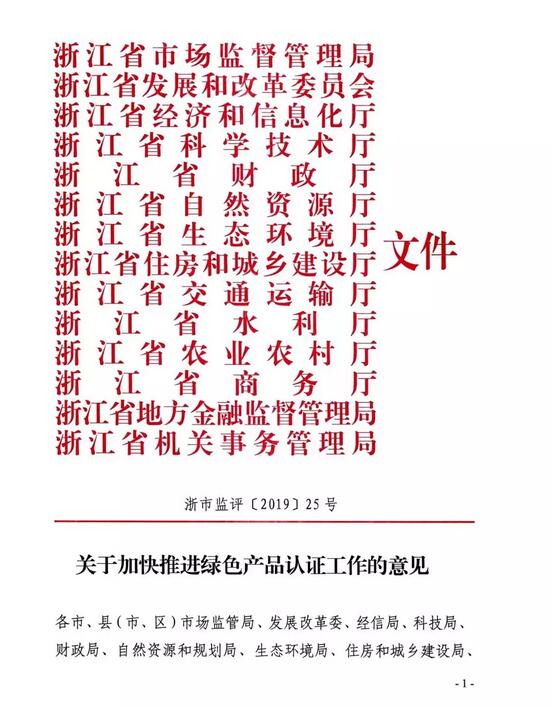 經(jīng)浙江省人民政府同意,浙江省市場監(jiān)管局、省發(fā)改委、省經(jīng)信廳、省財政廳、省科技廳、省自然資源廳、省生態(tài)環(huán)境廳等十四部門聯(lián)合印發(fā)《關(guān)于加快推進(jìn)綠色產(chǎn)品認(rèn)證工作的意見》。