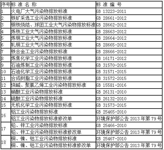 已規(guī)定大氣污染物特別排放限值的國(guó)家排放標(biāo)準(zhǔn)
