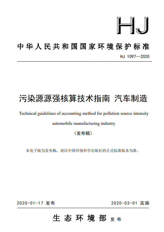 生態(tài)環(huán)境部發(fā)布關(guān)于發(fā)布《污染源源強(qiáng)核算技術(shù)指南 汽車(chē)制造》等兩項(xiàng)國(guó)家環(huán)境保護(hù)標(biāo)準(zhǔn)的公告,詳情如下: