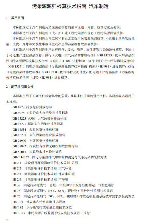 二、《污染源源強(qiáng)核算技術(shù)指南 汽車(chē)制造》(HJ1097 -2020)。