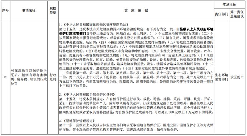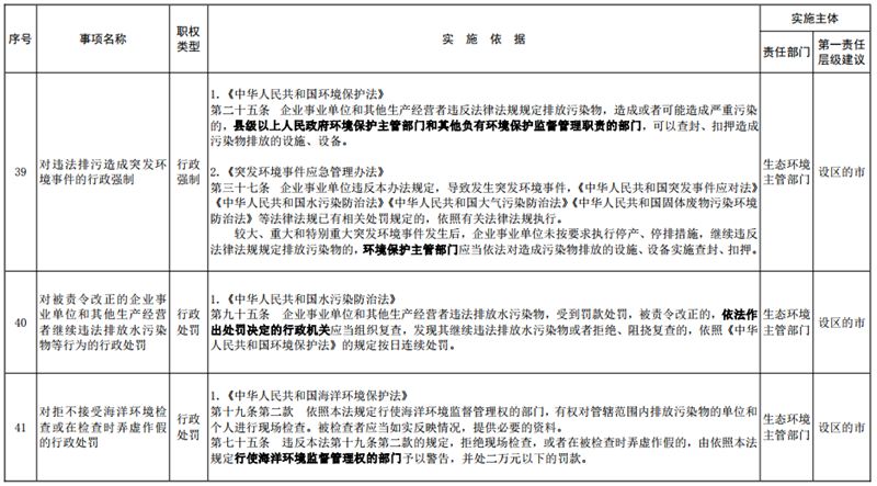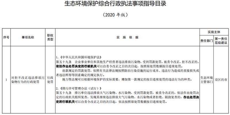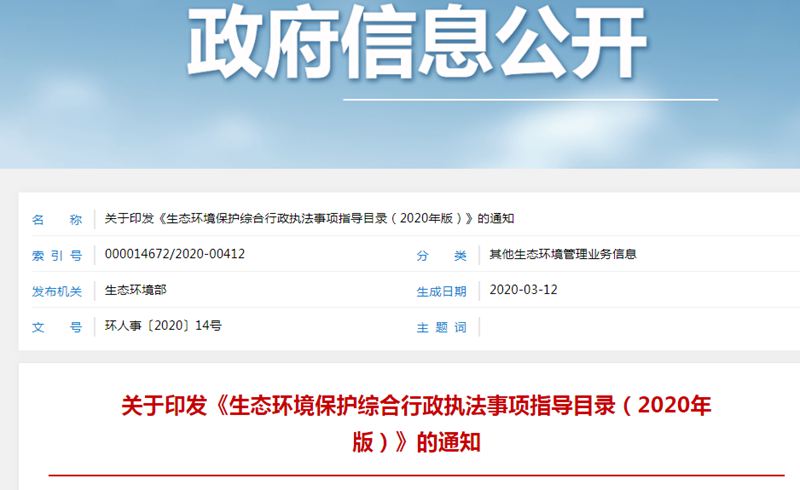 生態(tài)環(huán)境部發(fā)布《生態(tài)環(huán)境保護(hù)綜合行政執(zhí)法事項(xiàng)指導(dǎo)目錄(2020年版)》。全文如下: