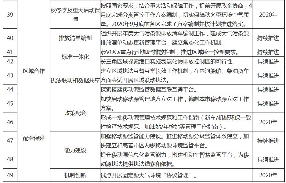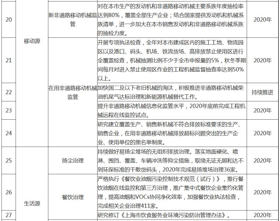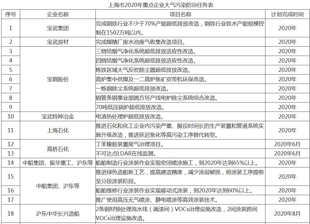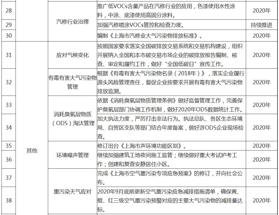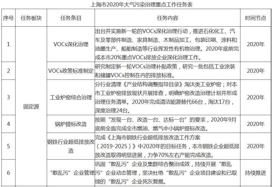附任務(wù)表|上海市2020年大氣污染防治工作計劃
