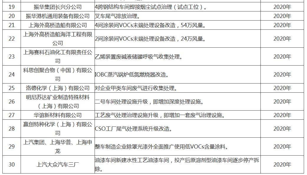 上汽集團(tuán)、上海華普、上海申龍等整車制造企業(yè)除罩光漆外全面推廣使用低VOCs含量涂料;上汽大眾汽車三廠年底前完成水性工藝油漆車間建設(shè),投產(chǎn)后原溶劑型油漆車間逐步停產(chǎn)拆除。
