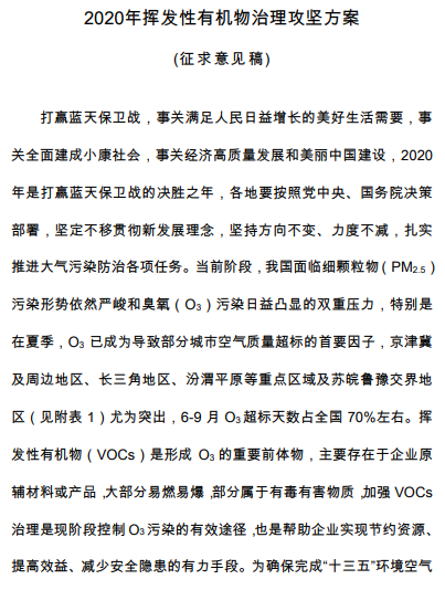 2020年揮發(fā)性有機(jī)物治理攻堅方案(征求意見稿)