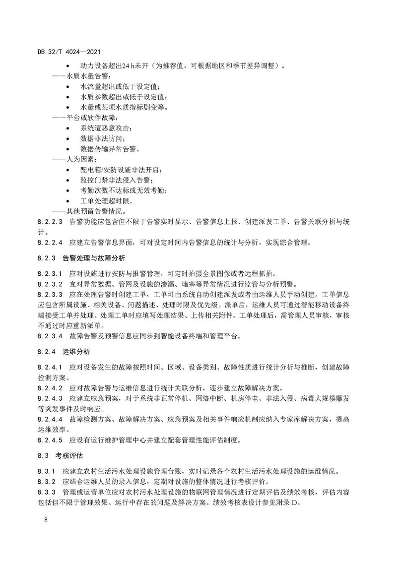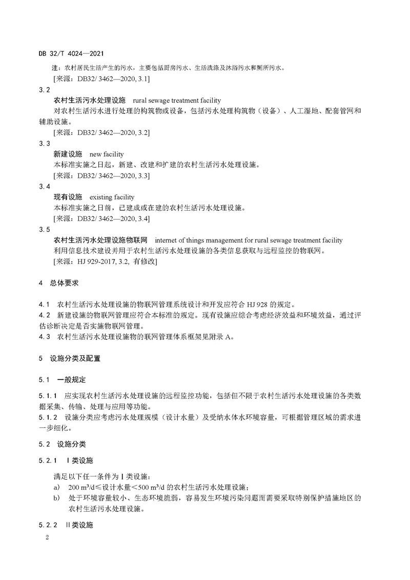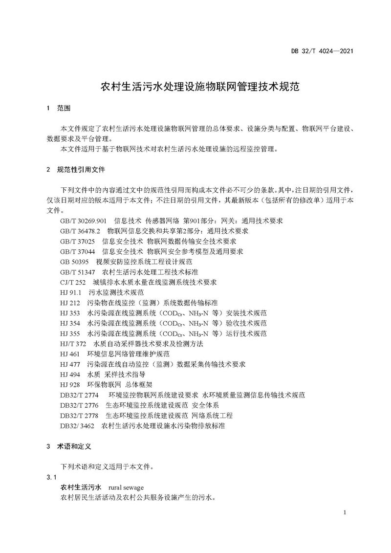 江蘇省地方標(biāo)準(zhǔn)《農(nóng)村生活污水處理設(shè)施物聯(lián)網(wǎng)管理技術(shù)規(guī)范》DB 32/T 4024—2021