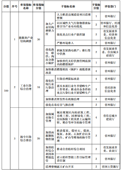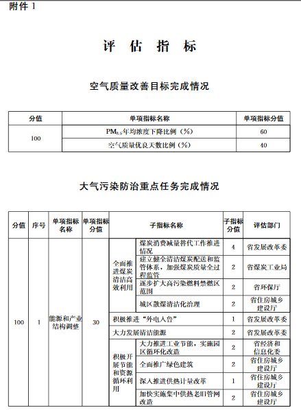 第三條評估指標(biāo)包括空氣質(zhì)量改善目標(biāo)完成情況、大氣污染防治重點任務(wù)完成情況。