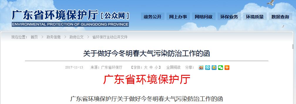 廣東省環(huán)境保護廳關于做好今冬明春大氣污染防治工作的函