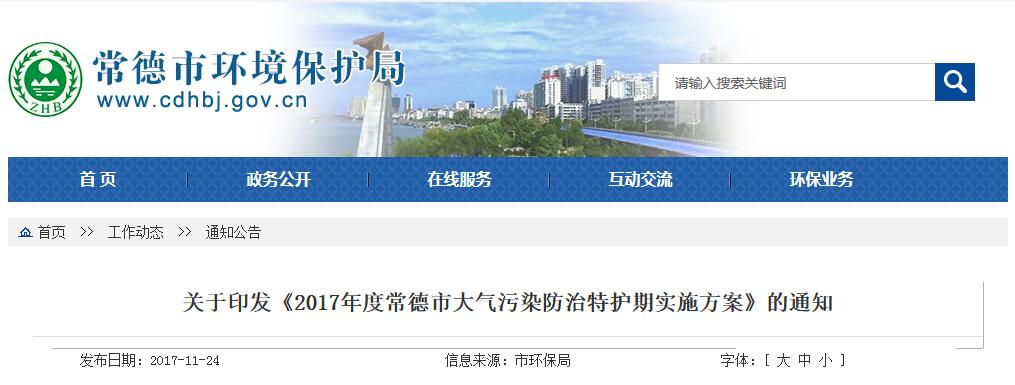 日前,湖南唱的市環(huán)保局印發(fā)《2017年度常德市大氣污染防治特護(hù)期實(shí)施方案》。全文如下: