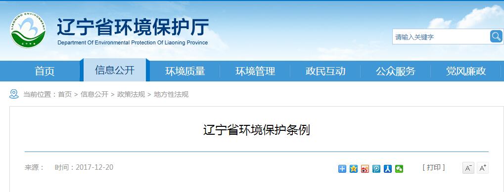 政策全文 |《遼寧省環(huán)境保護條例》2018年2月1日起施行
