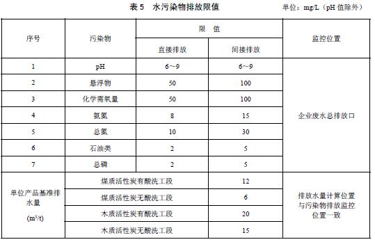 生產(chǎn)單位活性炭產(chǎn)品所允許的污染物排放量,以g/t或kg/t表示。
