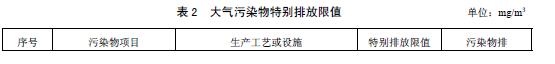4.1.3根據(jù)環(huán)境保護工作的要求,在國土開發(fā)密度已經(jīng)較高、環(huán)境承載力開始減弱,或大氣環(huán)境容量較小、生態(tài)環(huán)境脆弱,容易發(fā)生嚴重大氣環(huán)境污染問題而需要采取特別保護措施的地區(qū),應(yīng)嚴格控制企業(yè)的污染物排放行為,在上述地區(qū)的企業(yè)執(zhí)行表2規(guī)定的大氣污染物特別排放限值。