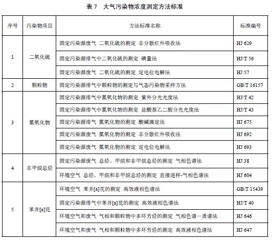 6.2.3企業(yè)排放大氣污染物濃度的測定采用表7所列的方法標準。