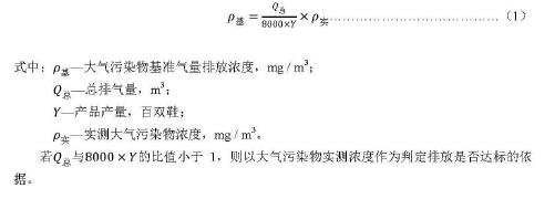 用于核定大氣污染物排放濃度而規(guī)定的生產單位產品的排氣量限值。